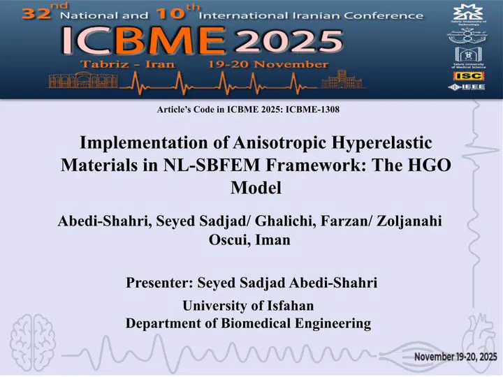 This paper presents the first implementation of anisotropic hyperelastic materials within the NL-SBFEM framework. The Holzapfel-Gasser-Ogden (HGO) model is integrated through the modular material interface to capture fiber-reinforced tissue behavior. Validation against ABAQUS shows excellent agreement with errors below 2% across different fiber orientations. Parametric studies demonstrate the framework’s ability to capture complex anisotropic responses including fiber dispersion effects and nonlinear stiffening behavior. The modular architecture enables future extensions to other anisotropic models and establishes NL-SBFEM as a viable alternative for biomechanical applications requiring boundary-only discretization.